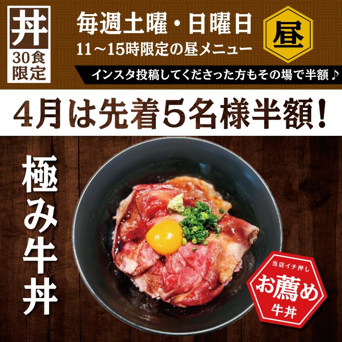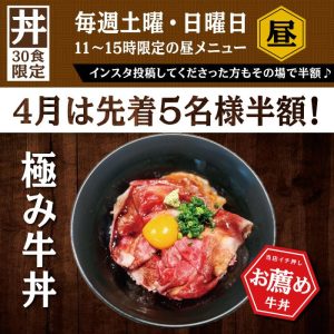 4月8日(土)より、毎週土・日で限定30食の極み牛丼を始めます✨